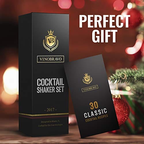 - 100% RISK-FREE AND LIFETIME GUARANTEE: Just like the rest of VinoBravo’s products, this cocktail shaker set is backed by a trusted guarantee to unbeatable quality, plus superb and reliable customer service. Got a question or concern? Don’t hesitate to reach out to any of our customer support representatives and we will take care of any issues you have.