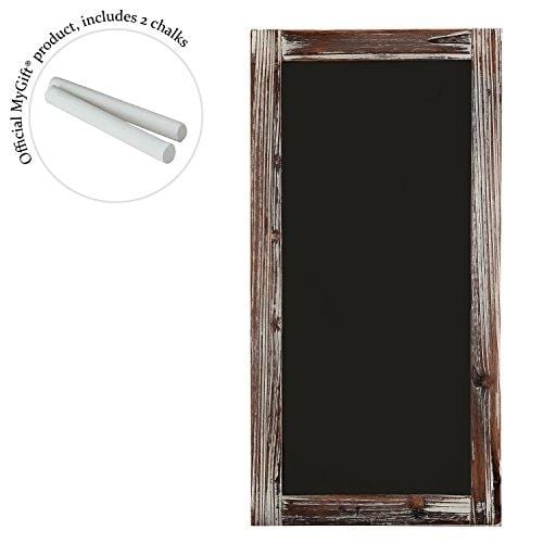 Details: Add charm and convenient to your wall space with this wall mounted chalkboard. Featuring a rustic-style wooden frame and a dark chalkboard surface that provides excellent contrast for white and colored chalk. This erasable wall sign provides you with the perfect place to leave messages or create artistic masterpieces in your home, office, restaurant, or store. Simply attach this chalk message board to any wall using the appropriate mounting hardware (not included) to bring charming, sensible style to your space. **Official MyGift product.** Approximate Dimensions (in inches): 25.25 W X 12.75 H X 0.5 D.
