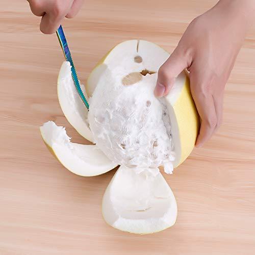 - SPECIAL DESIGN AND IMPROVED - Serrated edge on knife allows easily loosen grapefruit sections, suitable for oranges and kiwi fruit,etc. Angled tip of the knife effortlessly separates the membrane from the pulp.