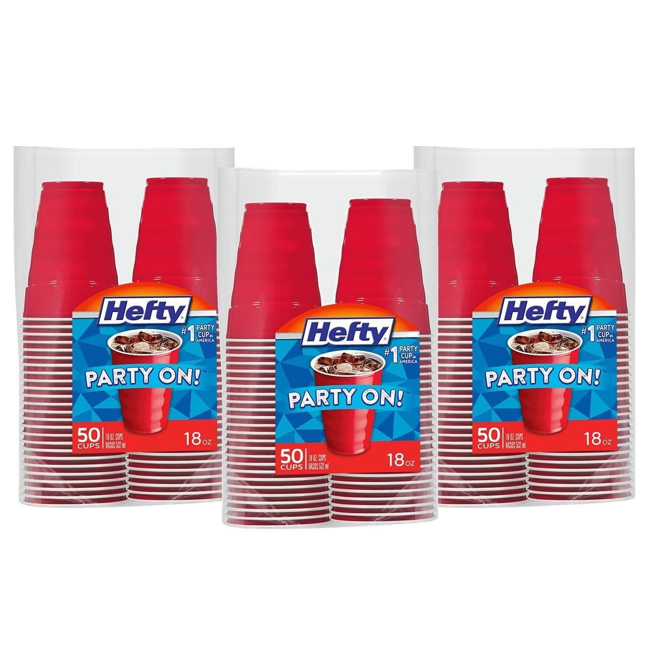 Hefty Party On Disposable Plastic Cups, Red, 18 Ounce, 50 Count (Pack of 3), 150 Total