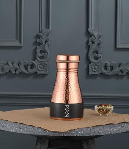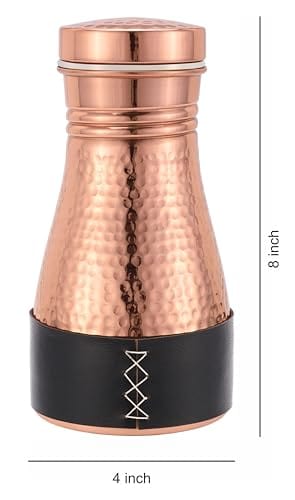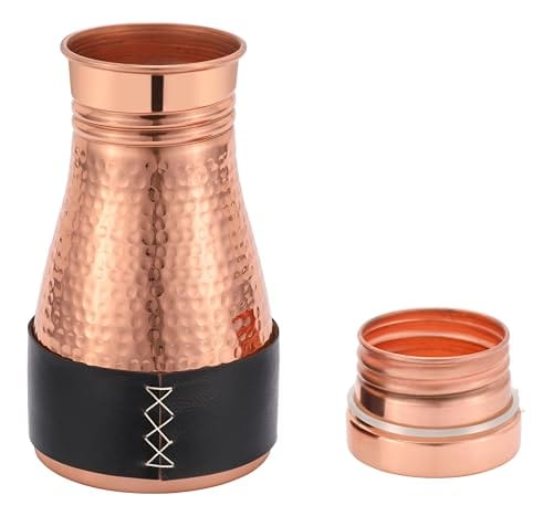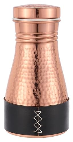 Kitchen Science Pure Copper Bedside Carafe | Handmade Jute Placemat | Leather Sleeve | 32 Oz | Leakproof Lid