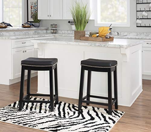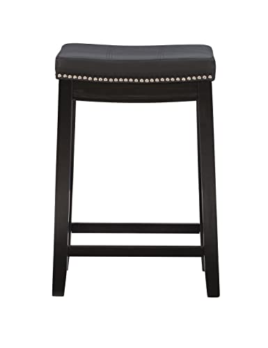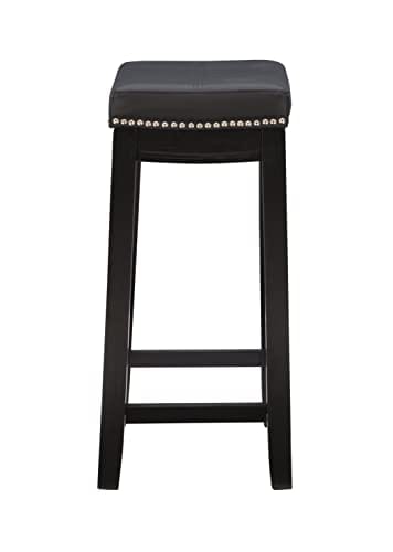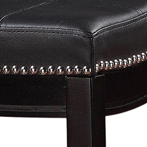 Details: This black counter stool will add stylish seating to any counter or high top table in your home. The sturdy wood frame has a black finish accented by a black faux leather upholstered seat. Silver nailhead trim and double needle stitching adds durability to the padded top for and eye catching detail. 26.5" seat height. 275 pound weight limit.