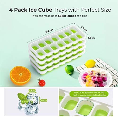 - Food-grade safety Material: made of silicone and PP material which are certified by LFGB, these 4 ice cube trays safety and durability. Each tray makes 14 nice-sized cubes for a total of 56. Great for home use, parties and bars etc