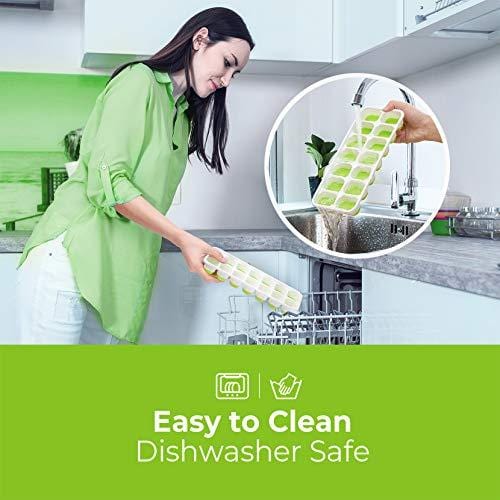 - Easy to use & Dishwasher safe: fill the trays with water, cover the lid on, and then slip the trays into the freezer. Besides water, you can fill the ice cube mold with fruits, ice cream, soda and wine to customize your favorite flavor. And you can simply put them into your dishwasher after use