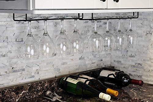 • EASY TO INSTALL: The wine glass holder comes fully assembled but requires installation. Hardware included for easy mounting. Installation is a breeze with the included screws and anchors. Fits under most cabinets. Enjoy the installation!