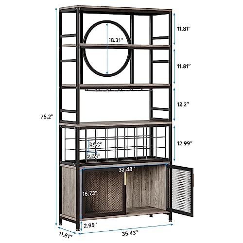 Tribesigns Wine Bar Cabinet 75 Inch Tall Wine Rack Freestanding Floor with Glass Holder and Storage Shelf, 27-Bottle Industrial Liquor Cabinet with Cabinet for Living Room, Home Bar