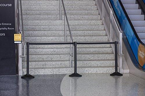 - Durable high density polyethylene weighted base (15 lb.) features no-skid, non-marking rubber feet to keep stanchion in place